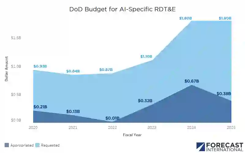 通过分析Forecast International的美国国防预算预测工具,可洞悉过去五年人工智能研发资金的配置轨迹。