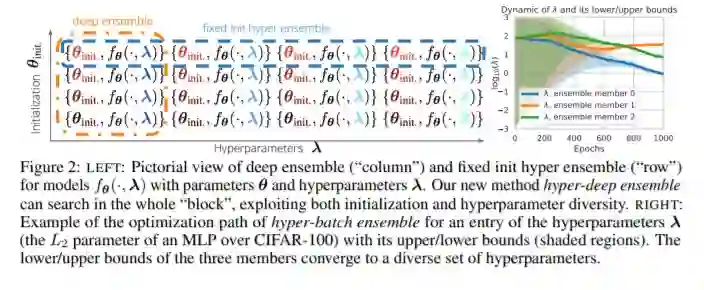 由不同的随机初始化训练的神经网络权重集合,被称为深度集合,实现了最先进的精度和校准。最近引入的批量集成提供了一个更有效的参数替换。在本文中,我们不仅设计了权值,而且设计了超参数,以改善这两种情况下的技术状况。为了获得不依赖预算的最佳性能,我们提出了超深集合,这是一个简单的过程,涉及对不同超参数的随机搜索,它们本身在多个随机初始化中分层。其强大的性能突出的好处,结合模型的重量和超参数多样性。在批量集成和自调优网络的基础上,进一步提出了参数高效的超批量集成。该方法的计算和内存成本明显低于典型的集成。在图像分类任务上,通过MLP、LeNet和Wide ResNet 28-10架构,我们的方法在深度和批处理集成上都有所改进。