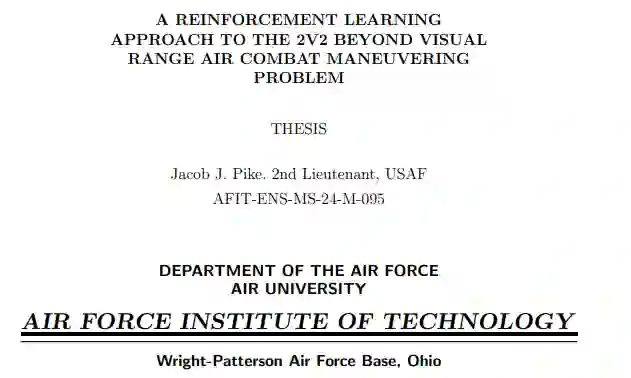 超视距(BVR)空战的起源可追溯至第二次世界大战后,其标志性事件是1946年美国海军研发的AIM-7“麻雀”导弹的问世。在冷战的紧张态势中,苏联轰炸机或战斗机可能配备新兴BVR导弹技术被视为对美国国家安全利益的重大威胁。尽管这一威胁从未真正实现,但随着冷战接近尾声,战斗机领域先进机动性与导弹技术的融合显著推动了BVR空战活动的发展。与受光照条件、目标尺寸、视觉敏锐度及目标方位等因素高度影响的视距内空对空(A2A)作战不同,现代BVR空战的机制主要围绕远程制导导弹的使用展开。在实际作战场景中,配备先进雷达系统的技术优势战斗机通过此类高精度远程导弹实现对敌机的压制。BVR空战的性质带来了独特挑战:由于缺乏成熟的战斗机战术与敌我识别(IFF)技术,飞行员常面临有效运用此类武器的局限性。为解决这些难题,基于强化学习(RL)的人工智能方法有望突破这些限制,提升美国空军(USAF)及其作战人员在BVR场景下的能力。