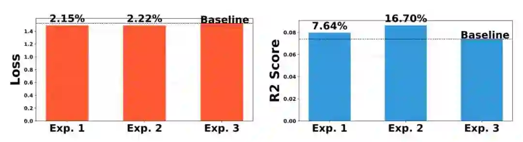 除此之外,我们验证了我们的排序指标在模型评估稳定性上的表现。实验结果如表2所示,可以发现相对于 r2_score 指标,我们的排序指标明显可以取得更加稳定的表现。
