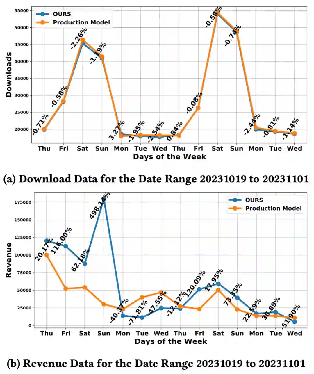 直观来看,把用户更满意的商品推荐给用户应该就可以激励用户付出更多的时间或者支出。然而,模型的上线对于现有的业务方来说是一个很严肃的事情,只有达到业务方的指标,才会被允许进行在线测试。但是如何在离线状态下评估模型是否有潜力使得平台获得更多收益是一个非常有挑战的事。因为用户的具体付费行为受到多种难以观测到的因素的影响。不过我们在这项研究工作中并没有针对这个研究任务展开更多的探索。我们最终仍然基于目前业务上使用的评估手段对模型的有效性进行评估。