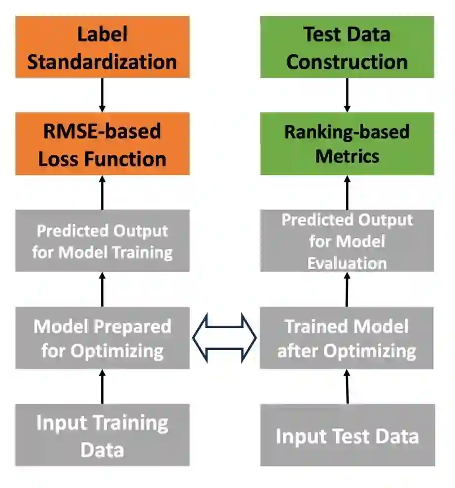 图 4 基于提出框架的模型损失函数和测试集上表现一致性验证为了验证我们提出的框架的有效性,我们分别从基于该框架训练得到的模型的损失值和评估数值一致性,以及是否可以使得拥有不同表达能力的模型在当前框架下的表现也保持一致。同时,我们也会对我们提出的标签标准化策略,以及排序指标的有效性进行验证。实验结果如下所示。从图 4对应实验结果中看出来,该框架在验证模型训练和测试稳定性方面表现一致。
