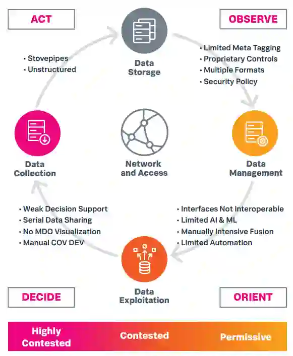 仅仅在某个时间点对所有的系统进行快照,然后在这个静态快照的基础上创建一个数据模型已经不够了。决策者在OODA环的每个阶段所面临的挑战的例子包括: