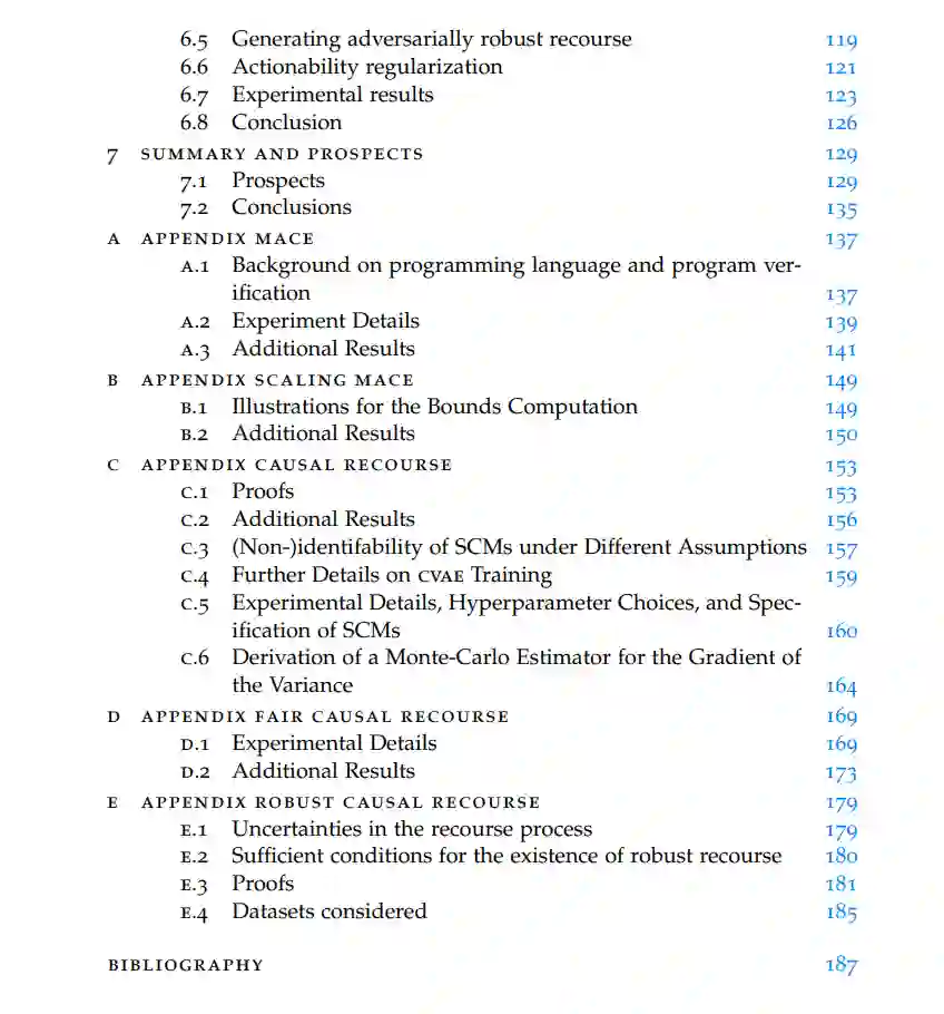 机器学习正在逐渐被用来指导在敏感环境中的关键决策,这些决策对个人的生活产生深远影响。例如,审前保释、贷款批准、简历筛选或重要药物的处方等。在这些情境中,模型必须准确、鲁棒,同时维护社会相关价值,如公平性、隐私性、问责制和可解释性。这些方面显著影响这些技术的接受度和影响。 在这篇论文中,我特别关注启用和促进算法补救的任务。这包括为个人提供易于理解的解释和建议,关于如何通过自动化系统做出的不利决策进行最有效(高效且理想地低成本)的恢复。以下研究问题得到解答: Q1. 我们如何为各种环境中受影响的个人提供补救?针对这个问题,我提出了一种基于正式验证标准理论和工具构建的生成模型不可知的反事实解释(MACE)的新算法。这种方法克服了以前策略的局限性,并支持模型、数据类型和距离不可知的反事实解释。它还为任何个人提供合理且多样的反事实,并以可证明的最优距离实现。Q2. 可以从反事实解释中得到哪些可行的见解?我认为解释必须使人们能够采取行动,而不仅仅是理解。使用反例和结构性因果模型(SCM)理论,我展示了行动建议通常不能从反事实解释中推断出来。我提出了生成最小后果干预(MINT)的新优化问题,提供在知道真实SCM的情况下的确切补救,以及仅当因果图可用时的概率补救。Q3. 提供补救解释/建议如何影响其他利益相关者?在这篇论文的第三部分,我认为应该在更广泛的背景下考虑向个人提供补救权,包括其对其他利益相关者和公平性、隐私性以及模型/IP安全等其他理想属性的影响。我定义并提出了提供公平补救的解决方案,并讨论不确定性和非平稳性如何影响提供的补救。我探索了鲁棒的补救策略,并讨论了可能对分类器或数据生成过程的潜在改变,以促进公平/鲁棒的补救。 总之,这篇论文为未来研究方向提供了路线图,挑战了现有的假设,并将补救的领域扩展到监督学习之外。
