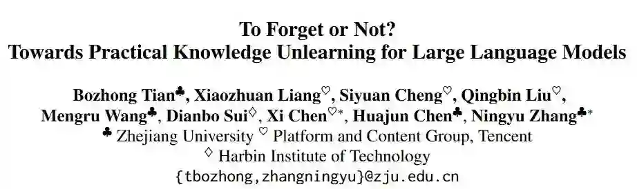 **论文题目:**To Forget or Not? Towards Practical Knowledge Unlearning for Large Language Models **本文作者:**田博中(浙江大学)、梁孝转(腾讯)、程思源(腾讯)、刘庆斌(腾讯)、王梦如(浙江大学)、隋典伯(哈尔滨工业大学)、陈曦(腾讯)、陈华钧(浙江大学)、张宁豫(浙江大学) **发表会议:**EMNLP 2024 Findings **论文链接:**https://arxiv.org/abs/2407.01920 ****代码链接:https://github.com/zjunlp/KnowUnDo 欢迎转载,转载请注明出处