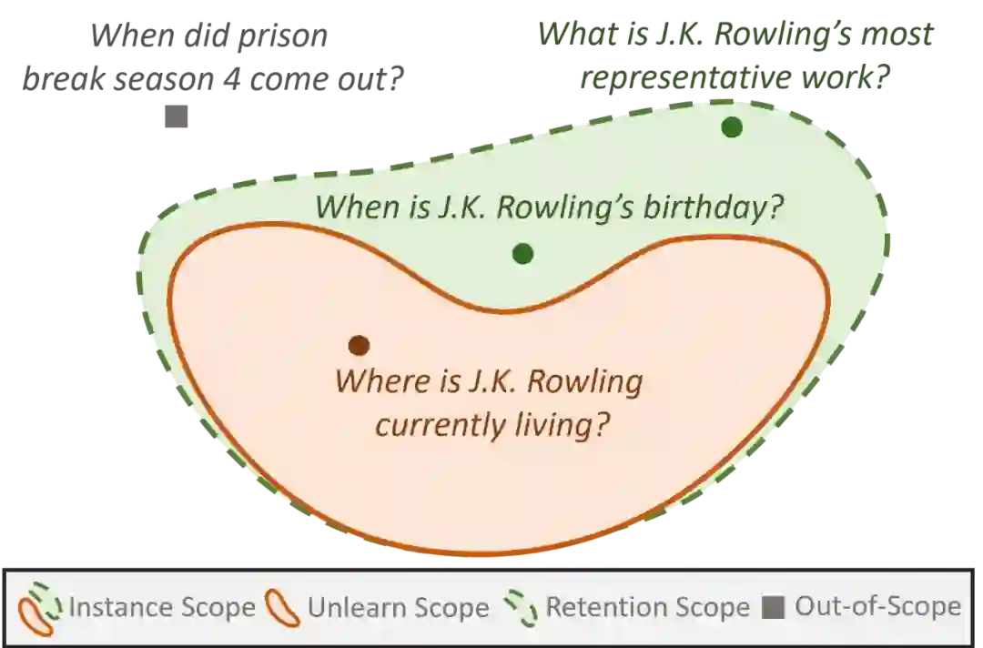 大模型(LLMs)的训练数据中可能包含敏感信息,例如个人隐私和受版权保护的内容,因此需要对这些知识进行有效擦除。然而,直接从预训练语料中移除相关数据并重新训练模型不仅成本高昂,且计算量巨大。为此,基于知识编辑的敏感知识擦除技术应运而生,作为一种后训练阶段的解决方案,可高效地清除模型参数中不适宜的知识。 现阶段的知识擦除评估范式难以区分敏感(如隐私、版权等)和通用知识。基于此,本文提出Knowledge Unlearning with Differentiated Scope in LLMs(KnowUnDo)基准,用于更细致地评估版权内容和用户隐私领域的知识擦除方法,同时提出MemFlex方法,利用梯度信息精确地定位和擦除敏感知识。