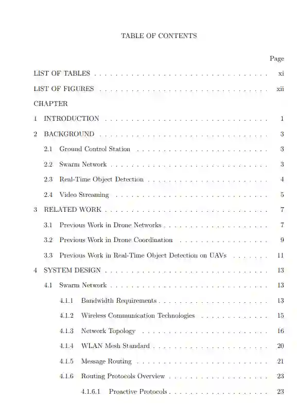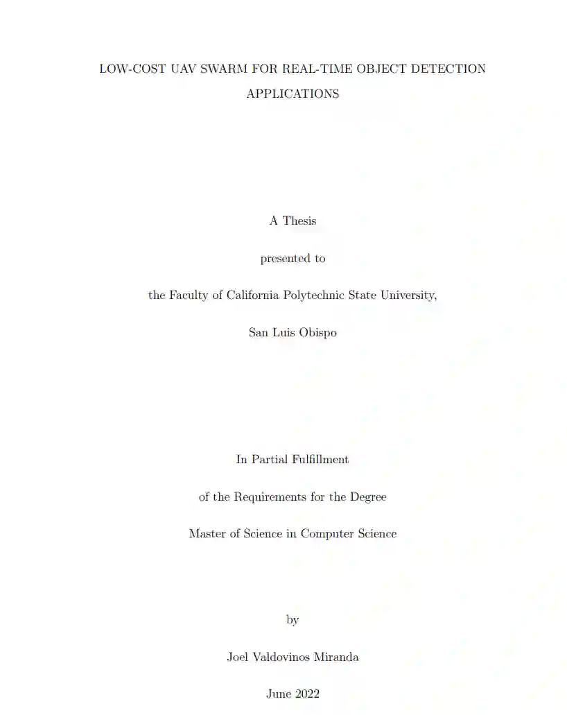 随着无人驾驶飞行器(UAVs),也被称为无人机,变得容易获得和负担得起,这些设备的应用已经大大增加。其中一种应用是使用无人机飞越大面积区域并探测所需实体。例如,一群无人机可以探测海洋表面附近的海洋生物,并向用户提供发现的动物的位置和类型。然而,即使无人机技术的成本降低,由于使用内置先进功能的定制硬件,这种应用的成本也很高。因此,本论文的重点是编制一个容易定制的、低成本的无人机设计,并配备必要的硬件,以实现自主行为、蜂群协调和机载物体探测能力。此外,本论文概述了必要的网络结构,以处理无人机群的互连和带宽要求。