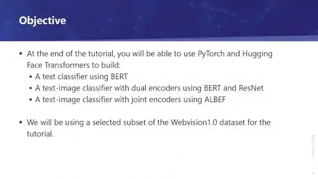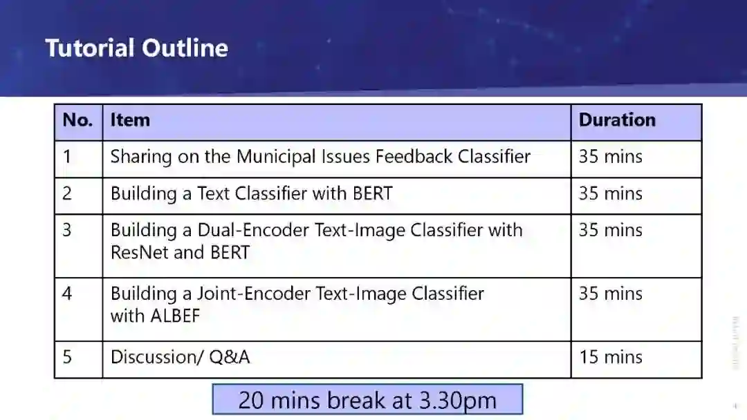 由于通过移动设备捕捉和传输图像的便捷性,多模态数据,尤其是图文并茂的数据在我们的社会中越来越普遍。除了社交媒体,这类数据在私营和公共部门也都在增长。企业和政府开发了更多、更好的应用程序,这些应用允许人们提交内容(例如,投诉、赞美、建议、技术支持请求、求助电话、产品评论),而不仅仅是文本形式,还附带图片,这样接收者就可以更好地了解手头的问题。随着这类数据的增加,对机器整体理解文本和图像以帮助人类做出决定的需求也在增加。这反过来又导致了对数据科学家和机器学习工程师的需求增加,他们知道如何构建可以做到这一点的模型。然而,大多数与此问题相关的现有教程分别处理文本和图像,因为它们传统上来自不同的领域。对于试图解决此类问题的初级数据科学家(甚至一些中级数据科学家)和机器学习工程师来说,融合来自这些不同教程的知识是一个挑战。我们希望通过本教程帮助他们克服这些挑战。