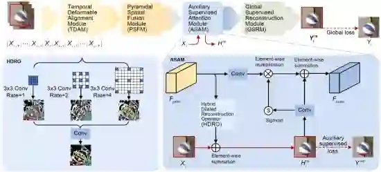 时空辅助转码压缩去伪影修复网络架构图