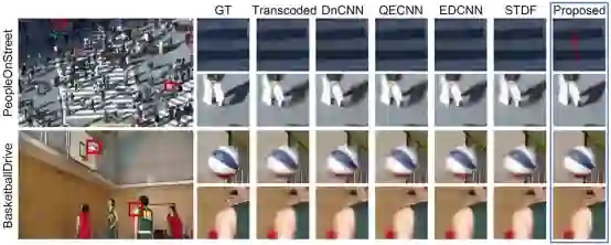 图5论文方案与先前方法在转码去伪影修复任务上的修复效果对比图