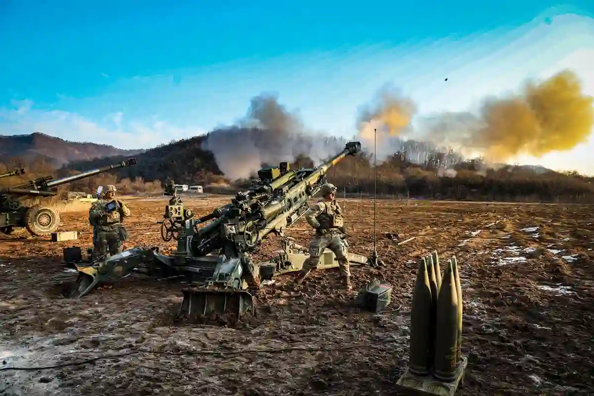 图:2023 年 1 月 12 日,美陆军第 2 步兵师第 2 斯崔克旅战斗队第 17 野战炮团第 2 营的一名炮兵在韩国第 12 轮换部队的炮兵训练演习中发射 M777 榴弹炮。(第二步兵师轮换旅军士长 Jerod Hathaway 供图)