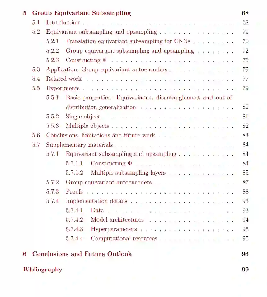 在后续章节中,我们提出了一些旨在提高深度学习系统数据效率的新技术和模型。首先,我们展示了基于条件神经过程(CNPs)的编码器-解码器风格的元学习方法的成功应用。其次,我们引入了一类新型的表达力强的元学习随机过程模型,这些模型通过在函数空间中堆叠神经参数化的马尔可夫转移算子序列构建而成。最后,我们提出了群等变子采样/上采样层,以解决传统子采样/上采样层中等变性的丧失问题。利用这些层可以构建端到端的等变模型,从而提升数据效率。