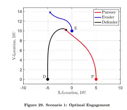 利用微分博弈论和最优控制理论,提出并解决了一系列方案,这些方案说明了成功防御高价值机载资产以抵御来袭威胁的不同最优策略。在动能防御的情况下,防御者-入侵者团队会努力在最后时刻与被俘的追击者保持尽可能远的距离,而追击者则会努力将上述距离最小化。当采用定向能防御时,追击者力争在最短时间内捕获躲避者,而防御者则力争在捕获躲避者之前最大限度地暴露追击者。