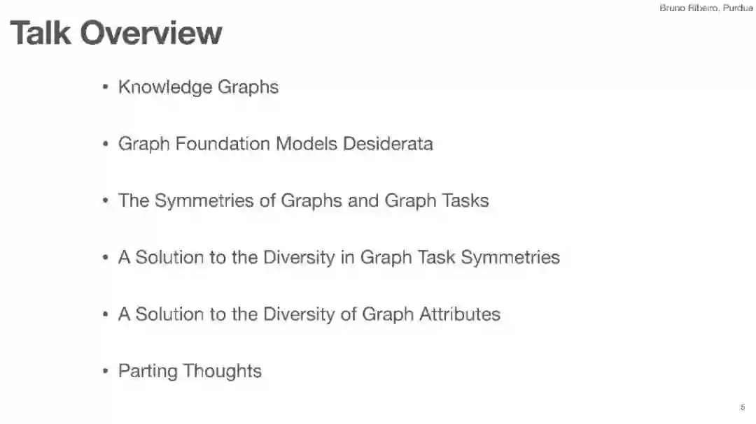 一种潜在的知识图谱基础模型定义是:一个图神经网络(GNN)模型,经过大规模知识图谱数据集的预训练,这些图谱涵盖了多个领域(例如,体育、艺术),该模型可以在不进行重新训练的情况下,泛化到新任务中,适用于未见过的领域、未知的关系类型和节点特征空间(例如,医疗健康)。在本研究中,我们探讨了基于不变性理论的数学基础,这为这种可适应模型提供了可能。我们的结果突出了不变性理论、图论、统计学与机器学习概念(如元学习)之间的若干有前景的联系,提供了一条通向更加灵活且可泛化的知识库图模型的路径。