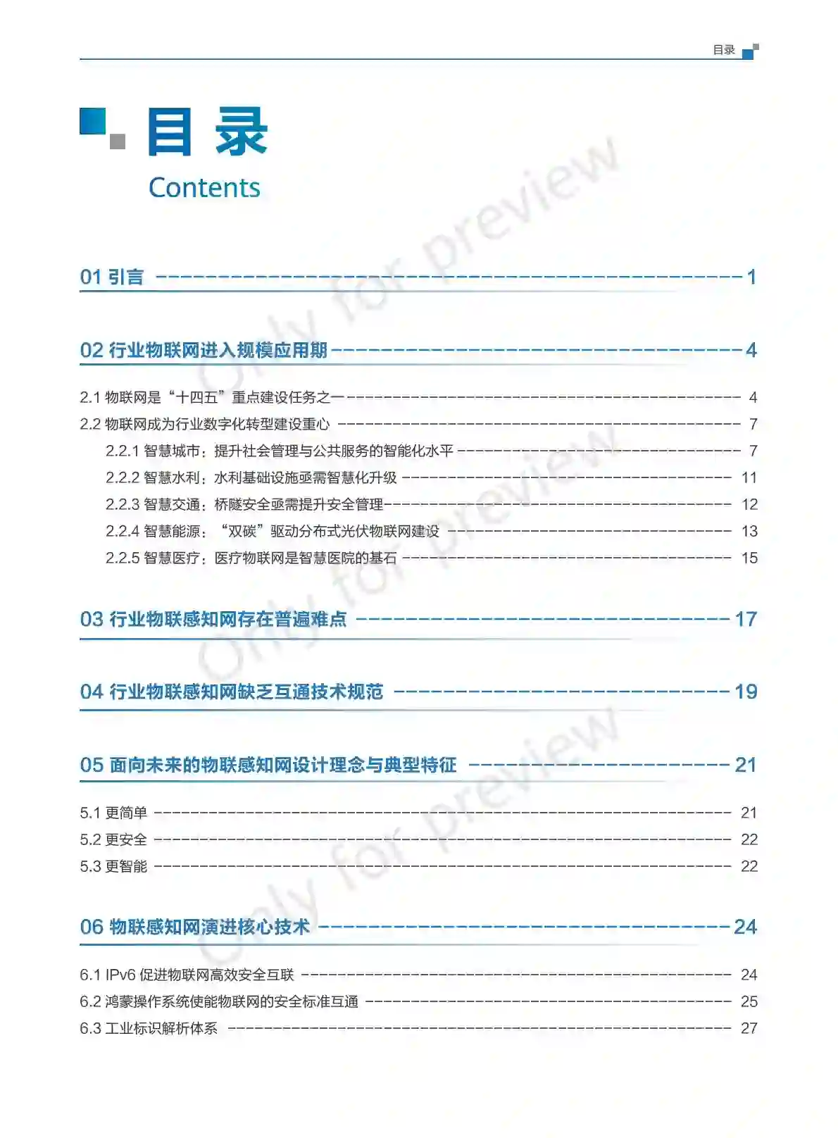 物联感知网是行业物联网的重要组成部分,是行业数字化转型的基石。蓝皮书着眼于行业痛点,以“更简单、更安全、更智能”的理念,基于IPv6技术、终端智能操作系统、工业标识等核心技术,重构和规范化感知接入网,提出构建以“全程极简、全栈安全、全景智能”为典型特征的物联感知网解决方案,夯实行业数字化联接底座。