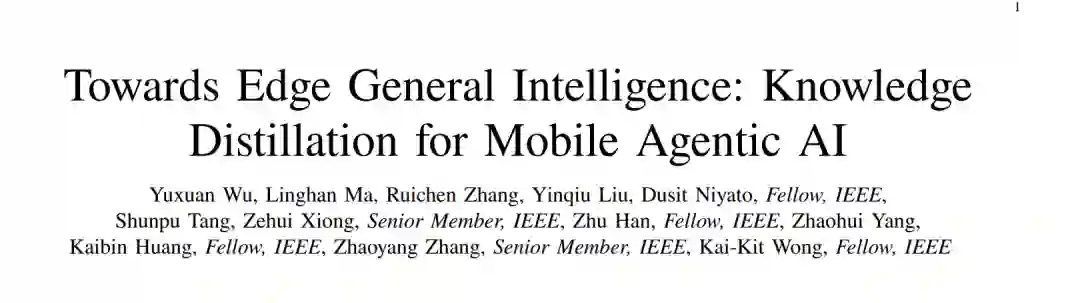 移动边缘计算市场正在经历显著增长,预测显示其市场规模将从 2024 年约 16.5 亿美元增长至 2032 年超过 135 亿美元¹。推动这一增长的动力主要来自对低时延计算以及更高质量体验(QoE)的需求,而移动与物联网设备的数量正快速攀升。这样的发展格局催生了一场重要的技术变革,即所谓的“智能体化(agentification)”,通过集成大型语言模型(LLMs)和其他先进 AI 模块,使边缘设备具备自主能力。这一转变将传统被动的边缘节点转化为主动的移动智能体 AI 系统,使其能够感知环境、进行推理,并在无须人工干预的情况下执行复杂的多步骤任务。 这一智能体中心的范式具有多重优势。移动智能体 AI [1] 能够实现更高程度的自动化与个性化,因为智能体可以学习用户偏好并在设备本地实时适应动态场景。本地计算显著降低了时延,并通过减少对集中式云服务器的依赖提升了数据隐私。此外,这些智能体可以主动预判问题、优化流程,并在不同系统之间协同操作,从而提升运行效率、加速问题解决、增强服务灵活性。通过在网络边缘嵌入复杂的认知能力,移动智能体 AI 为更加智能、响应迅速且安全的应用铺平了道路,这是迈向 EGI 的关键步骤。EGI 被定义为:边缘设备在严格的资源与时延约束条件下,能够执行类似云端 AI 的通用推理与问题求解能力 [2]。 EGI 的实现依赖于移动智能体 AI 的部署。LLMs 为这些智能体提供了认知引擎,在规划、推理和工具使用方面展现出卓越能力。然而,LLMs 巨大的计算、存储与能耗需求与移动端和边缘设备的资源受限特性根本不兼容 [3]。这种“部署鸿沟”是实现 EGI 愿景的首要障碍。 为弥合这一差距,知识蒸馏(Knowledge Distillation, KD)作为一种压缩大型模型的关键方法应运而生。KD 指的是训练一个较小的“学生”模型去模仿一个更大、更强的“教师”模型的行为。这使得学生模型能够在紧凑的模型规模中保留教师的高级能力,从而适用于资源受限的边缘硬件部署 [4]。