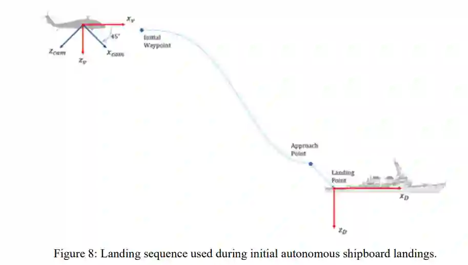 宾夕法尼亚州立大学与海军水面作战中心卡德鲁克分部(NSWCCD)合作,对一个完整的自动降落系统进行了规模试验。这些试验利用了低成本的商品、电子设备和多旋翼飞机,通过在卡德洛克波浪槽设施的船舶模型上着陆来展示自动着陆能力。这些实验涉及到轨迹生成方法、可扩展的飞行控制法、甲板运动预测算法、基于视觉的传感和状态估计的开发和实施。