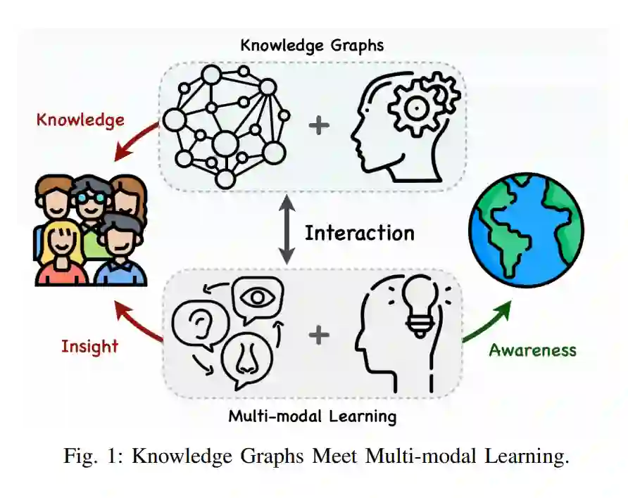 第二种类型**,称为躯干到尾部知识,日常生活中遇到的频率较低,通常不会导致条件反射的形成。这一类别需要主动记忆或深思,凸显了知识图谱(KGs)在捕获和结构化长尾知识方面的重要性**。尽管当前的大规模预训练努力吸收了知识,但面临着幻觉现象和在非常规知识中模糊不清的挑战【2】-【5】,我们的研究主要关注KGs内的符号化、结构化知识。鉴于KGs在结构化长尾知识中的关键作用及其在许多成功的AI和信息系统中作为基础知识表示元素的既定地位【6】,因此将KGs和多模态学习结合考虑是合理的。 如图1所示,现实生活中的个体需要同时处理来自环境的多模态信息,同时不断吸收和利用知识。这些元素不应孤立工作;相反,知识和多模态本质上是互补的。尽管存在这种内在的联系,但历史上,这两个领域独立发展。因此,以往的工作要么专注于KG增强的多模态学习,要么专注于多模态KG研究本身。直到现在,还没有任何研究或综述提供了这些领域的全面、均衡分析,导致它们的发展进一步分化。 在本文中,我们首先系统回顾了从传统KGs到MMKGs的发展,重点关注语义网社区在各个阶段的演变优先级。然后,我们仔细分类KG驱动的多模态任务(KG4MM),其中KGs作为知识的关键仓库,为各种下游多模态任务提供推理基础和必要的长尾知识。继之后,我们探讨多模态技术对KGs的影响,讨论它们当前的状态和未来的前景。为了提供清晰的概览,我们分析了每个任务内的方法论演进并对关键领域进行基准测试,使读者能够有效地比较不同任务的方法。我们的综述主要集中在过去三年(2020-2023)的研究上,并考虑到最近大型语言模型(LLMs)技术的快速进步,我们还探讨了LLMs与我们研究中讨论的各个主题之间的相互作用。 这份综述适合所有AI研究者,特别是那些将要进入具有知识要求的多模态学习领域的研究者。对于那些已经在这一领域从事研究但热衷于探索利用跨模态知识表示和知识驱动的多模态推理解决方案的人,以及从事KG和语义技术工作的个人而言,这份综述也大有裨益。