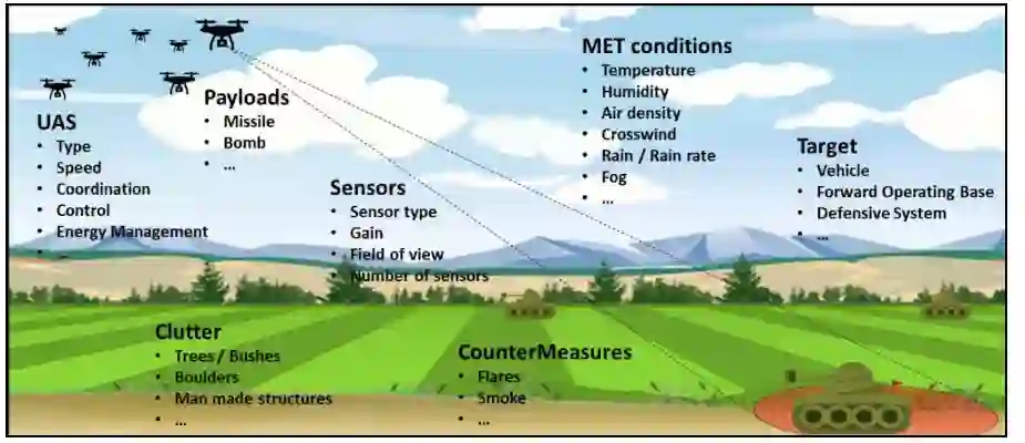 无人机系统(UAS)集群攻击因其压倒性规模、多样化运用方式及对防御漏洞的潜在利用能力,对防御系统构成了重大且持续演变的威胁。随着防御能力需要与不断发展的UAS蜂群技术保持同步,建立有效的评估方法变得至关重要。本文探讨了一种定制化建模与仿真(M&S)方法的开发,该方法专门用于评估防御系统对抗UAS集群攻击的能力,旨在识别对抵御这种多维度威胁贡献最大的关键因素。提出的M&S框架整合了多种要素,包括UAS集群特征、防御系统参数及杀伤效能,以支持制定和完善应对此类威胁的战术、技术与程序(TTPs)。