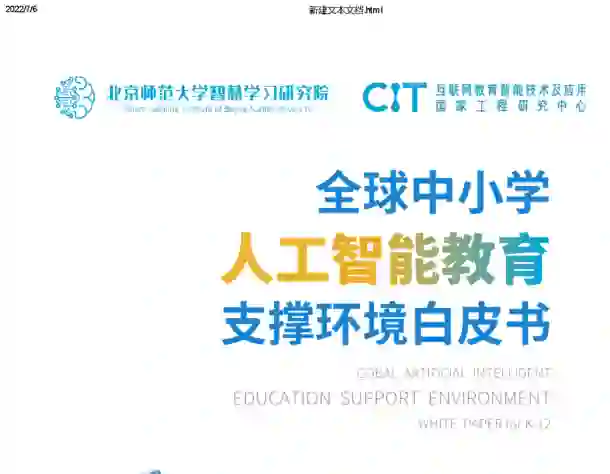 今天分享来自于北京师范大学智慧学习研究院的《2022年全球中小学人工智能教育支撑环境白皮书》,本白皮书共六章,简要描述如下∶