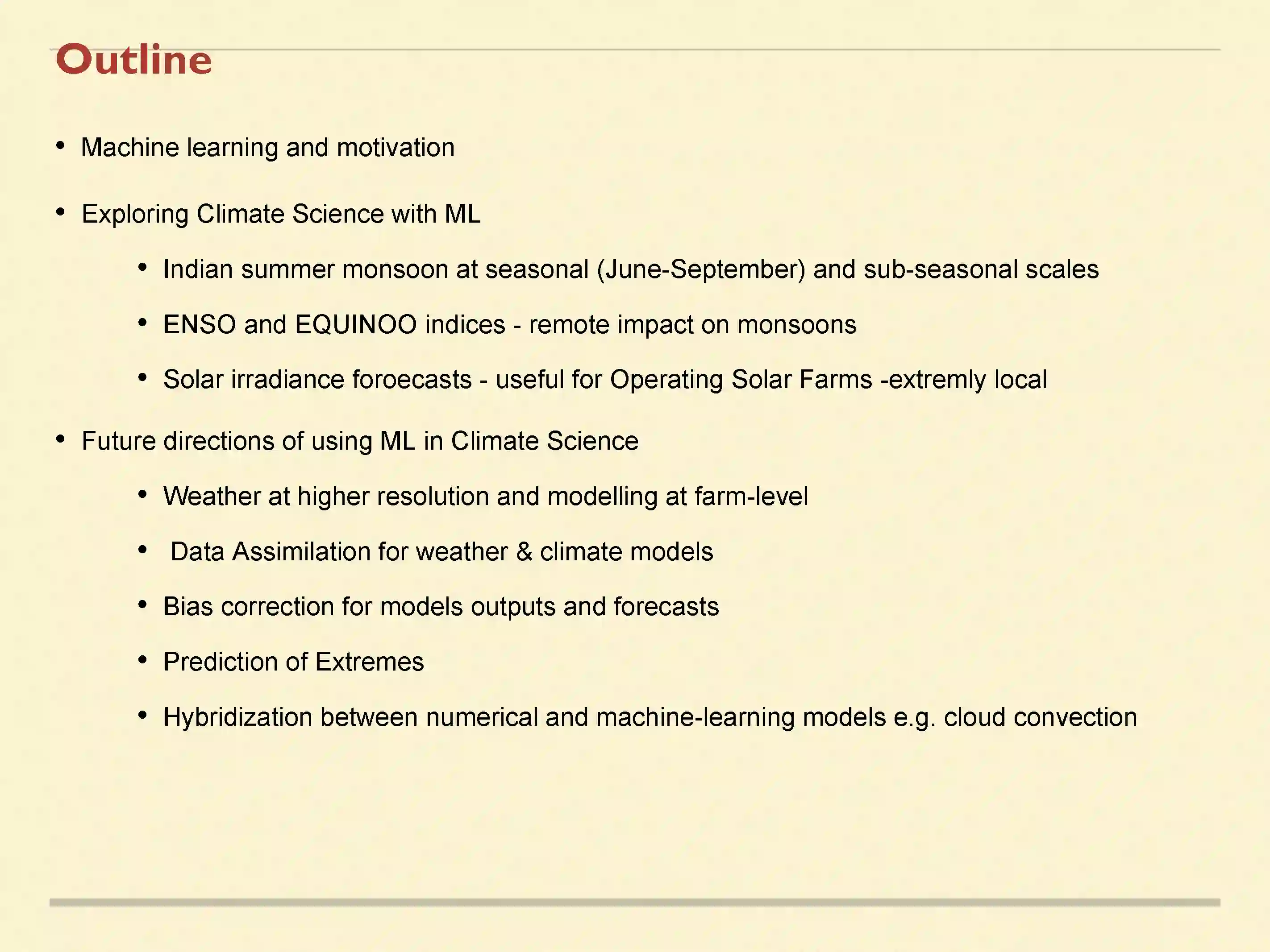 在2021年3月举办的“南亚次季节到季节预测的未来方向”虚拟国际会议上,Ravi S. Nanjundiah教授讲述了“Use of Machine Learning Techniques for Seasonal and Subseasonal Studies and Predictions(使用机器学习技术对季节和次季节研究和预测)”报告。