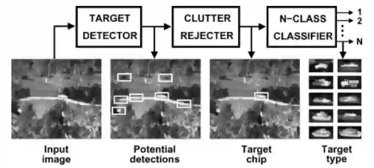 自动目标识别(ATR)是指从收集的传感器信息中自动检测感兴趣的目标并进行分类的行为[72]。ATR是一个多学科的领域,包括但不限于信号处理、图像处理、人工智能、统计和人的表现。一个ATR系统要经历一个多步骤的过程。这些步骤包括但不限于: