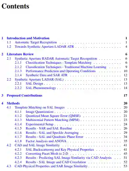 本节前面提到的模式有大量的知识,讨论了传感器现象学、ATR算法和传感器现象学。本论文的重点是合成孔径LADAR。对于ATR的目的,SAL是相对未被探索的。正如第二章所讨论的,SAL的知识体系主要包括传感器设计和现象学。对现象学和设计进行了很好的研究,可以确定在SAL数据上设计一个有效的ATR的潜在问题。此外,还讨论了SAR ATR的技术现状。