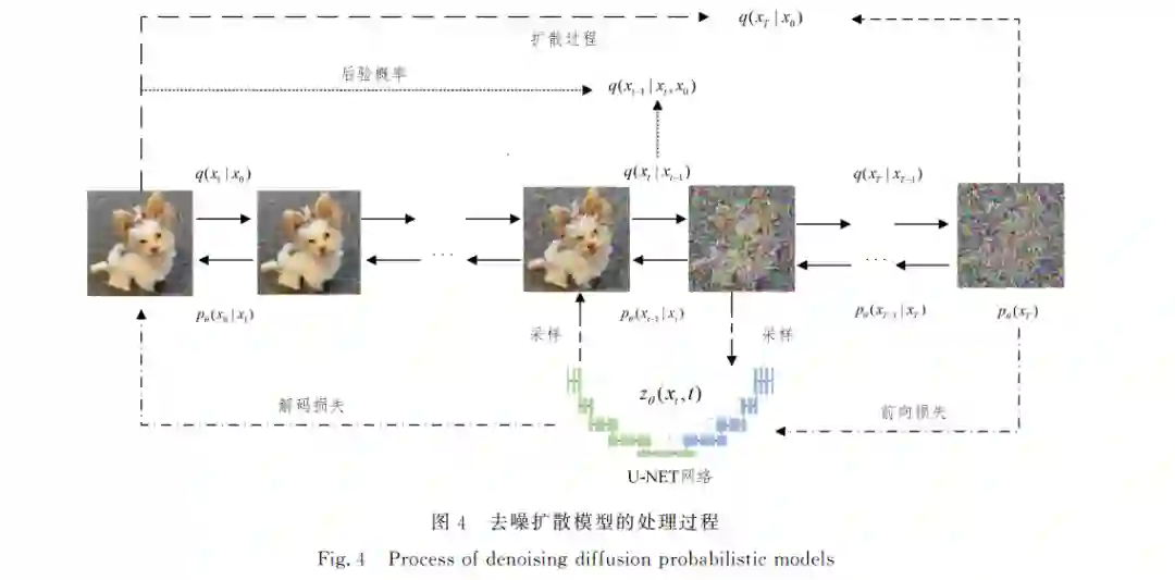 摘 要 扩散模型在生成模型领域具有高质量的样本生成能力,一经推出就不断地刷新图像生成评价指标 FID 分数的记录, 成为了该领域的研究热点,而此类相关综述在国内还鲜有介绍.因此,文中对相关扩散生成模型的研究进行汇总与分析.首 先,对去噪扩散概率模型、基于分数的扩散生成模型和随机微分方程的扩散生成模型这3类通用模型的特点和原理进行了论 述,就每一类基本扩散模型中以优化模型内部算法、高效采样为改进目标的相关衍生模型进行分析.其次,对当下扩散模型在 计算机视觉、自然语言处理、时间序列、多模态和跨学科领域等方面的应用进行总结.最后,基于上述论述,分别就目前扩散生成 模型存在的采样步骤多、采样时间长等局限性提出了相关建议,并结合前述研究对未来扩散生成模型的发展方向进行了研判. 关键词:深度学习;生成模型;去噪扩散概率模型;基于分数的扩散模型;随机微分方程;图像生成