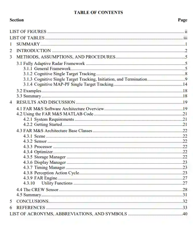 第一阶段开发的FAR M&S架构允许在模拟和实验CREW数据源之间,以及在驱动传感的FAR算法之间进行透明切换。轻松交换传感和处理对象的能力将允许快速开发和测试认知雷达算法,通过构建M&S功能来避免重复工作和 "单点 "解决方案。它将使工业界、学术界和空军的研究人员之间的合作成为可能,因为不同研究人员开发的算法可以使用一致的模拟、收集的数据和实验室条件进行测试和比较。