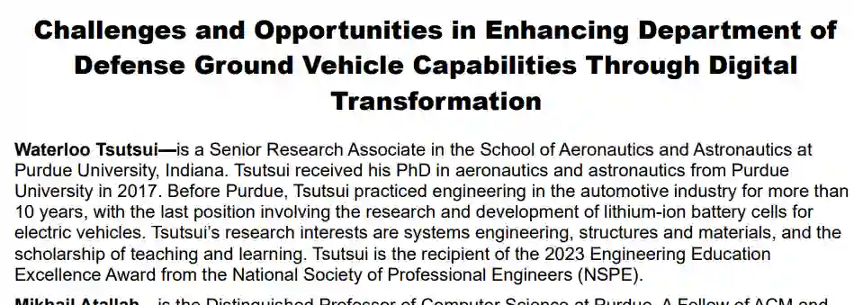 本文通过对美国防部相关人员的深入访谈,以及对现有指南、标准和相关文献的严格审查,提出了见解。本文重点关注数字建模、数据利用和数据驱动决策的关键方面,主要侧重于美国陆军地面车辆应用,以应对挑战和机遇。数据驱动决策在很大程度上依赖于精确的数字孪生模型,这对地面车辆在预定环境中的准备工作至关重要,尤其是在北极车辆准备等具有挑战性的环境中。因此,在现实应用和数字孪生之间建立协同关系至关重要。然而,美国陆军在从原始设备制造商那里获取全面的数字数据方面面临着障碍,特别是对于较老的地面车辆平台,因此必须通过逆向工程来弥补差距。挑战源于缺乏标准化的数字数据实践,这就需要建立一个有凝聚力的数字建模框架。为此,本文提出了一个智能前端框架。该框架优化和整合了国防应用和决策的数据管理。总之,本文强调了采用数字技术、优化和实现数据利用以及应对数据挑战对提高国防部战备和效能的重要意义。