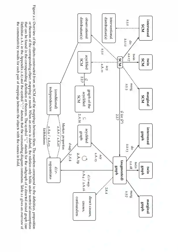 我们为SCM提供了边缘化操作(Bongers等人,2021;第2.5节),适用于获得变量子集的边际SCM。对于循环SCM,如果没有进一步的假设,边缘化并不总是存在。证明了这种边缘化操作在一定的局部唯一可解条件下保持了概率和因果语义。类似地,人们可以边缘化SCM的图,称为图的“潜在投影”。本文表明,SCM的边缘化一般不尊重其关联图的潜投影,但证明了它在一个额外的本地祖先唯一可解性条件下是尊重的。 •提供了在SCM图中识别有向路径和双向边的条件(Bongers等人,2021;2.7节)。本文表明,不能总是从观察分布和/或介入性分布的差异中识别(双)定向路径或边的存在或不存在。此外,如果存在循环,则可能存在“非祖先”效应,即对某个变量的干预可能会改变其非后代变量在图中的分布。本文证明了这种“非祖先”效应的反直觉行为在适当的可解性条件下不会发生。