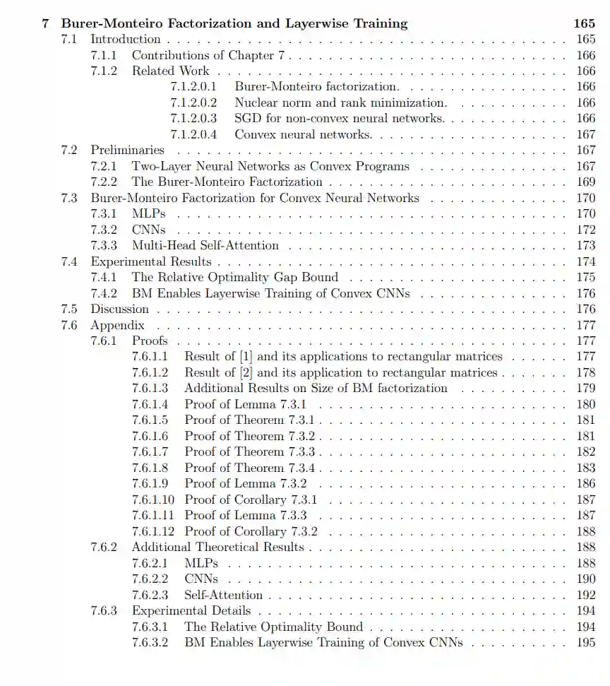 在本论文的其余部分,我们探索了不同的神经网络架构和训练机制,这些机制对凸优化公式提出了新的挑战。我们展示了对于卷积神经网络和Transformer架构,优化问题也可以接受凸重构。我们还展示了对于具有批量归一化和生成对抗网络的神经网络,相同的凸重构技术可以解开非凸优化中无法解释的方面,并对实际问题提供更快、更稳健的解决方案。最后,我们展示了这些方法可以通过Burer-Monteiro分解凸目标来扩展到更深的网络,同时保持凸保证,但允许以可扩展的方式逐层堆叠凸子网络。