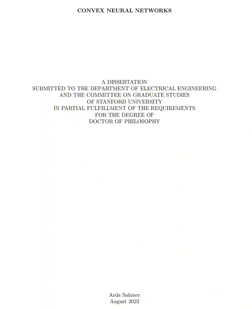 神经网络在各种机器学习任务和不同领域取得了巨大的进步。通常,神经网络依赖于启发式地优化非凸目标,这引发了对它们的透明度、效率和经验性能的质疑。在这篇论文中,我们展示了各种神经网络架构都可以适应凸优化,意味着它们的非凸目标可以通过半无限对偶公式重新构成为凸优化问题。我们首先展示对于具有ReLU激活函数的双层全连接神经网络,优化问题是凸的,并且与共积程序编程有着独特的联系,该程序具有一种促进网络中使用的激活模式数量稀疏性以及每种激活模式中活跃的神经元数量稀疏性的正则化器。我们展示了在某些数据情况下,这种公式能够获得封闭形式的解决方案,并使用共积程序编程来放松问题,使其在问题维度上为多项式时间,对于固定秩的数据矩阵而言。我们展示了解决凸形式的重构问题会比应用于原始非凸目标的启发式算法(如梯度下降)找到更好的解决方案。