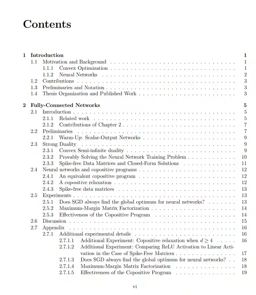 然而,尽管取得了成功,神经网络通常被认为是黑盒,很难理解它们为什么如此有效。这种缺乏理解是神经网络进一步发展的主要障碍。具体来说,训练神经网络的优化过程并不被充分理解,尚不清楚为何这种优化过程能产生在未见数据上表现良好的解决方案。这尤其令人困惑,因为并没有保证神经网络会收敛到全局最优解,在许多情况下,众所周知神经网络只会收敛到局部最优,这些局部最优在解决方案空间的某个邻域内是最优的,但不是最佳可能解决方案。这引发了一个问题:是否存在更好的解决方案,以及如何找到它们。此外,由于优化过程不被充分理解,神经网络训练往往是一个效率低下的试错过程,需要重度的直觉和实验来找到一个好的解决方案。在大规模机器学习的世界里,这尤其令人关注,因为训练LLMs的成本对于少数机构来说是高得令人望而却步的。 在这篇论文中,我们旨在通过理解和利用神经网络优化问题的隐含结构来解决这些问题。我们将通过找到神经网络问题的一个等价公式来做到这一点,这个公式是凸的,可以高效地解决。