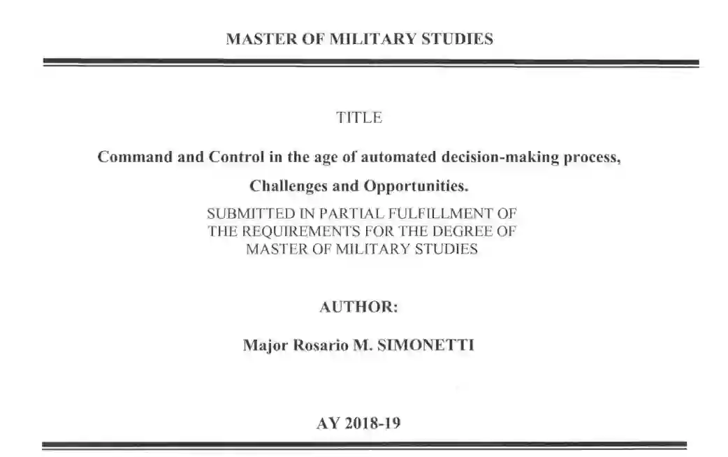 武装冲突的自动化提供了如此明显的机会,代表了下一个不对称的优势。从更广泛的角度来看,自主系统据称是解决不确定性、在有争议的环境中的力量投射和(人类)力量的经济性问题。然而,从指挥和控制的角度来看,人类和自主系统之间的关系是一个没有被彻底探索的领域。