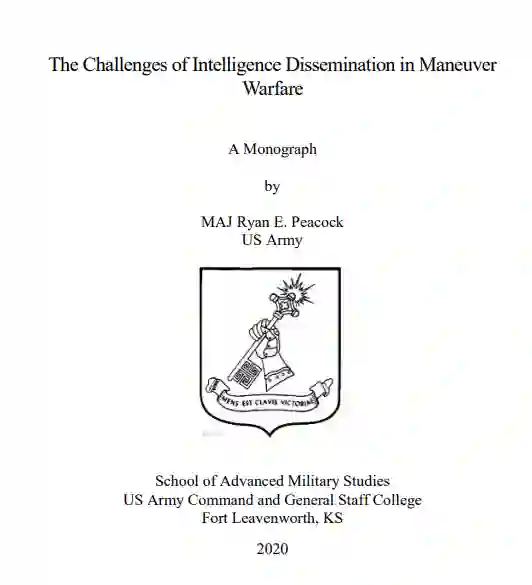 战术资源的缺乏给军队传播战略和行动情报的能力造成了巨大压力。与伊拉克和阿富汗相比,机动战争由于不断移动,给情报传播带来了巨大压力。在机动战争中,缺乏战术资产比缺乏战略资产更可取,因为战术收集无法提供支持作战和战略决策者所需的细节。然而,这种差距意味着战术指挥官在未来冲突中将更加依赖上级总部的情报搜集。在远距离快速移动的冲突中,保持传播变得更具挑战性,失败的风险也会增加。