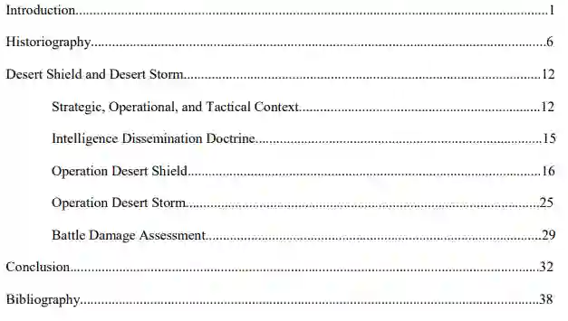 剩下的部分是历史研究、案例研究和结论。史论部分将重点介绍前人关于海湾战争的主要观点和主题。海湾战争案例研究将从联军作战的战略和行动背景、当时的情报传播条令开始,过渡到沙漠盾牌和风暴行动,最后总结经验教训。专著的结论部分将考虑将海湾战争应用于当今和未来的后勤支持行动,并提出建议。