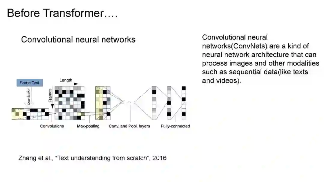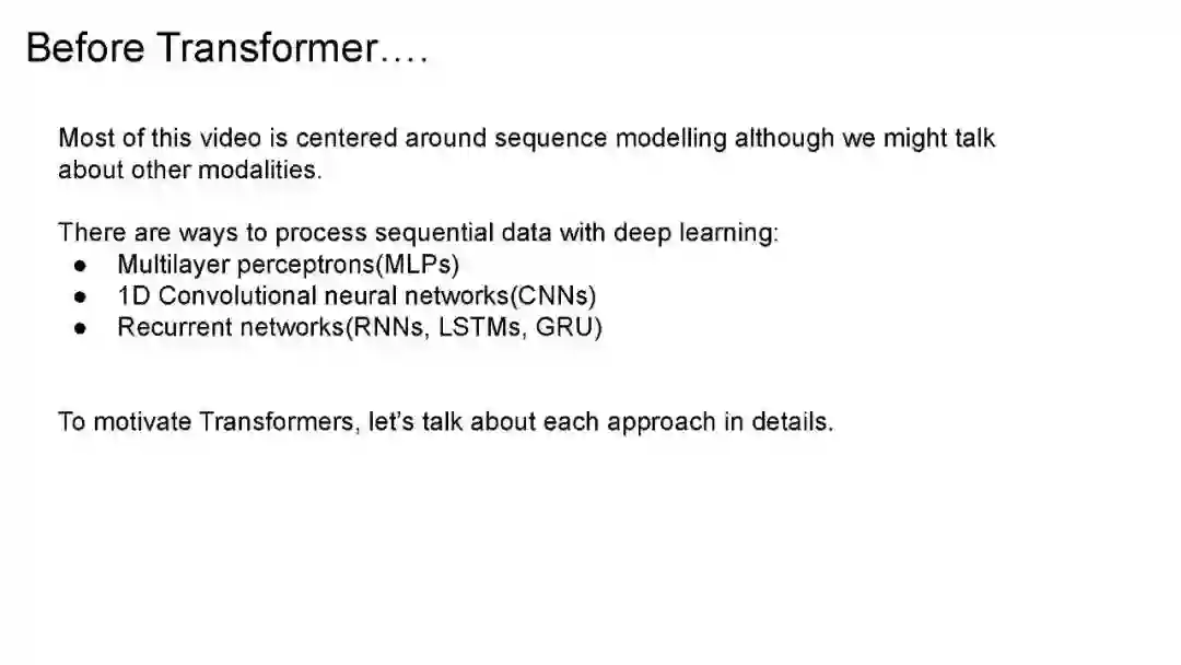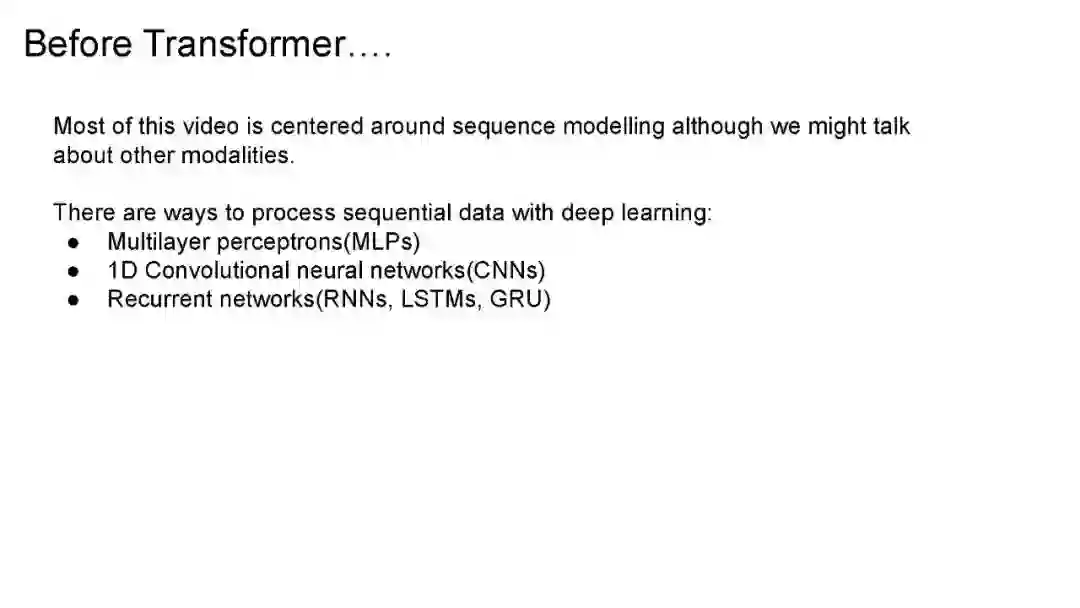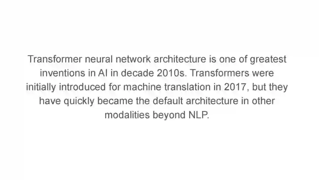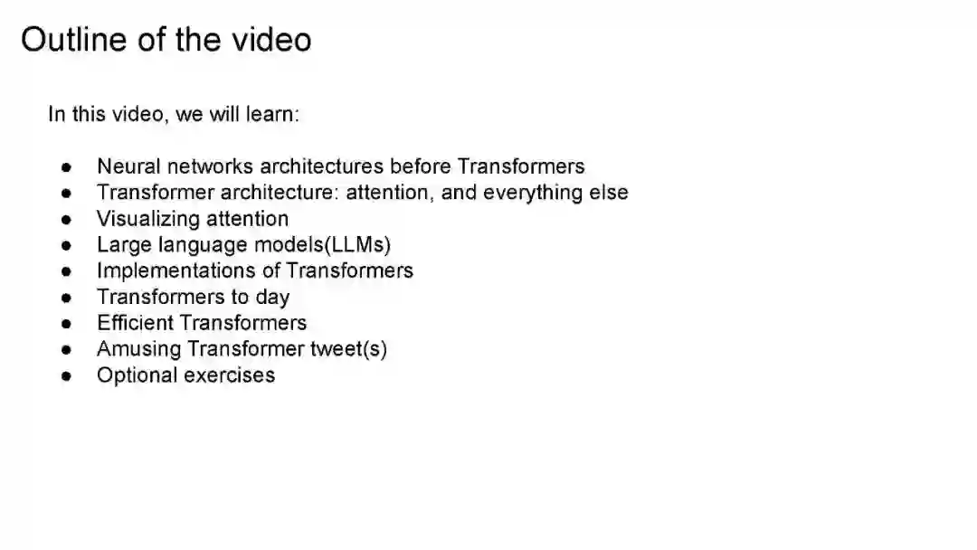 Transformer是一种基于注意力机制的神经网络架构。Transformer架构在Attention is All You Need论文中介绍,这是一篇你可能知道的优秀论文。transformer最初用于机器翻译,但截至目前,它们已应用于人工智能的其他领域,如计算机视觉、多模态学习、机器人、强化学习等。这是一个全面的视频,深入探讨了Transformer架构和注意力机制以及其他相关主题,如大型语言模型(涵盖BERT和GPT-3),高效的Transformer和Transformer目前的状态。