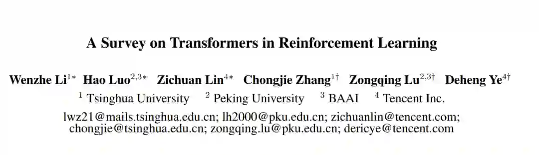 近年来,Transformer架构[Vaswani等人,2017]彻底改变了广泛的SL任务的学习范式[Devlin等人,2018;Dosovitskiy等人,2020;Dong等人,2018],并展示了比CNN和RNN的优越性能。Transformer架构的显著优点之一是能够对长依赖关系进行建模,并具有出色的可扩展性[Khan et al., 2022]。受SL成功的启发,人们对将transformer应用于强化学习的兴趣激增,希望将transformer的好处带到RL领域。在强化学习中使用transformer可以追溯到Zambaldi等人[2018b],其中自注意力机制用于结构化状态表示的关系推理。之后,许多研究人员试图将自注意力应用于表示学习,以提取实体之间的关系,以更好地进行策略学习[Vinyals et al., 2019; Baker et al., 2019]。除了利用transformer进行状态表示学习外,之前的工作还使用transformer来捕获多步时间依赖关系,以处理部分可观测性问题[Parisotto et al., 2020; Parisotto and Salakhutdinov, 2021]。最近,离线强化学习[Levine等人,2020]因其能够利用离线大规模数据集而受到关注。在离线强化学习的激励下,最近的努力表明,Transformer架构可以直接作为序列决策的模型[Chen等人,2021;Janner等人,2021]并将其推广到多个任务和领域[Lee等人,2022;Carroll等人,2022]。