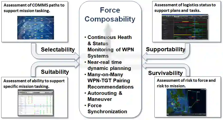 持续生成部队建议以立即投入战斗需要新的概念和能力,包括在整个部队企业中纵向和横向传播数据和决策。除了估计对手的态势、能力和意图外,部队指挥官还必须以系统健康和状态的形式深入了解当前蓝军和盟军资产的适用性,以便在最大限度地降低部队风险和任务风险的同时制定部队任务。为多个单元分配任务并规划其相关机动,以支持位置和时间限制以及任务依赖性是一个艰巨的目标,需要先进的算法来实现部队在时间、目的和空间上的同步。综合作战部队企业的前提是了解和评估所有单元的所有系统,以最大限度地提高所有目标的集体效能和效率。
