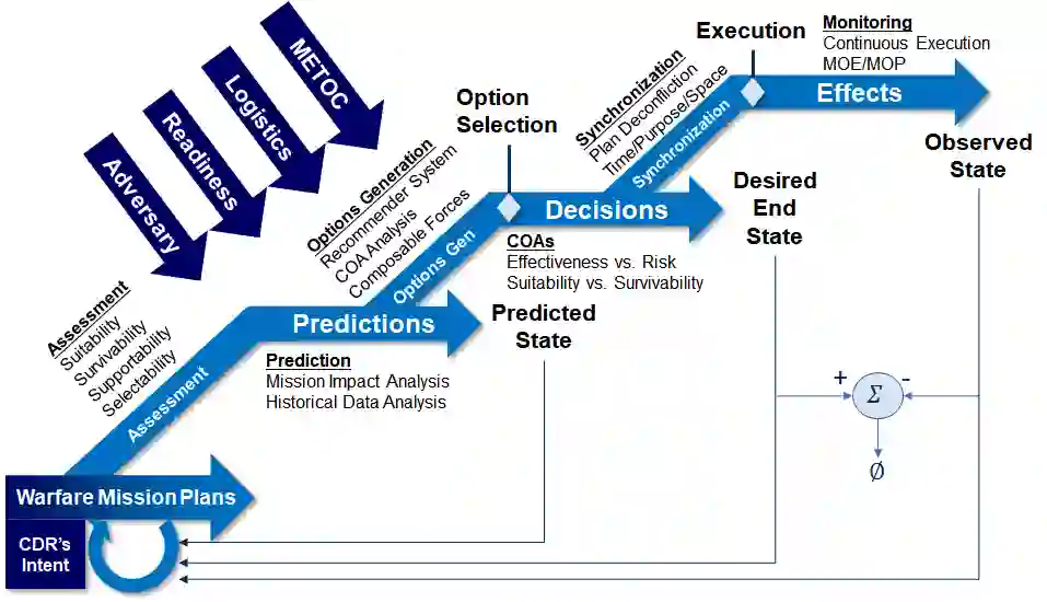 更具杀伤力、支持网络、射程更远、速度更快的武器的出现缩短了交战时间,对决策时间产生了重大影响。认识到决策优势可以通过使用自动化方法持续评估环境以提供所需的动能和非动能效果来实现,从而缓解时间压缩问题。美国海军上将罗伯特-威拉德(退役)在《重新发现指挥与控制的艺术》一书中强调,时间是最常被重新分配的资产。然而,考虑到对手当前的能力发展轨迹,杀伤链中可用于调整计划的时间是一种越来越少的资源。
