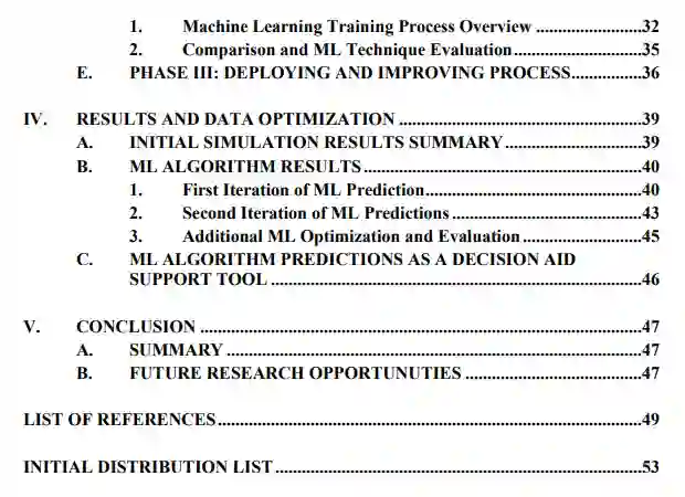 总的来说,对多种机器学习技术进行了评估,以支持在模拟交战中预测成功的无人机交战方法,发现最适合的是树状分类技术。实验证明了机器学习在这个问题领域的应用,通过建模和模拟,机器学习算法训练是成功的。最终机器学习算法预测的结果,在预测基于敌人类型、数量和激光武器系统攻击方法的交战结果时,总体准确率为96%;假阳性预测,即算法预测的胜利是失败的,为2.1%。这些结果表明,一个复杂的战斗空间模拟软件可以用来准确地训练预测性机器学习算法。