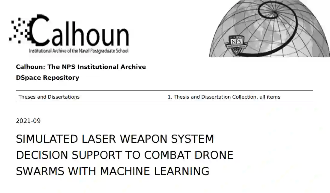 这项研究表明,将兵棋模拟与机器学习算法相结合,为支持复杂的决策和交战提供了一种机制,由激光武器系统来对付敌人的无人机群。通过实施训练有素的机器学习算法,可以分析具有异质无人机群的复杂战斗空间,从而选择适当的交战技术,从而优化目标交战的生存能力和有效性。这篇论文的主要研究目标是探索机器学习方法在识别和支持模拟舰载激光武器系统的有效目标选择和交战方法方面的功效。这项研究是生成决策辅助工具的一个组成部分,以支持无人机群与激光武器系统的交战。现代战斗空间的复杂性质需要决策辅助工具来减少作战人员的认知负担。