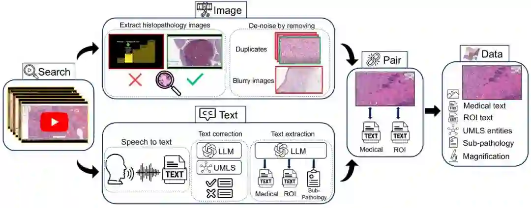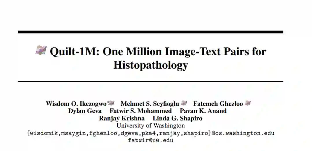 近期在多模态应用中的加速发展得益于线上大量的图像和文本数据。但是,在医学领域,特别是在组织病理学中,相似数据的稀缺性已经阻碍了类似的进展。为了在组织病理学中实现类似的表示学习,我们转向YouTube,这是一个尚未被充分利用的视频资源,提供了1,087小时来自专家临床医生的有价值的教育性组织病理学视频。从YouTube,我们策划了Quilt:一个大型的视觉-语言数据集,包括768,826对图像和文本。Quilt是使用各种模型(包括大型语言模型)、手工算法、人类知识数据库和自动语音识别自动策划的。相比之下,为组织病理学策划的最全面的数据集只有约200K样本。我们将Quilt与来自其他来源的数据集结合,包括Twitter、研究论文和互联网,创建了一个更大的数据集:Quilt-1M,它包括1M对图像-文本样本,使其成为迄今为止最大的视觉-语言组织病理学数据集。我们通过微调一个预训练的CLIP模型来展示Quilt-1M的价值。我们的模型在对13个不同的补丁级数据集的8种不同子病理学分类的零射击和线性探测任务,以及跨模态检索任务上均超过了最先进的模型。