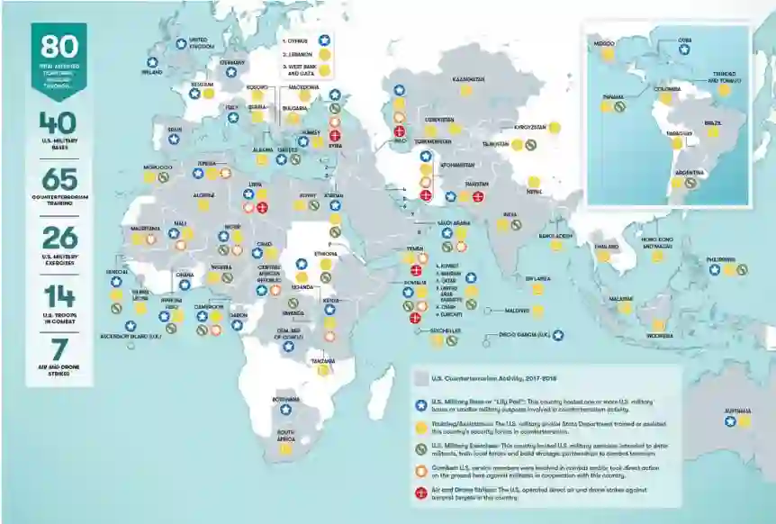 图 1:美国打击恐怖主义的军事行动示意图(截至 2019 年 1 月)