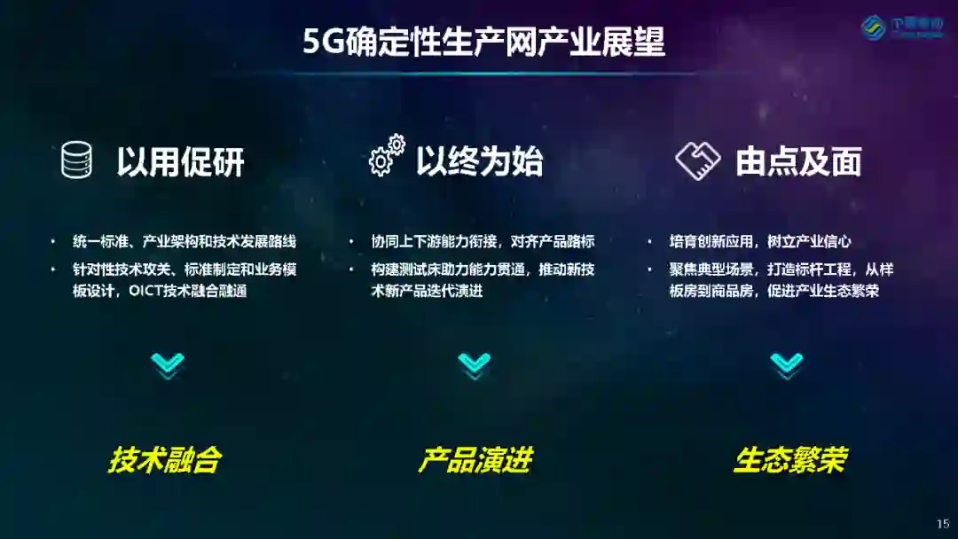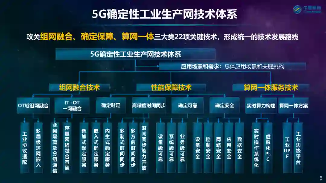 段晓东进一步指出,5G确定性工业生产网聚焦组网融合、确定保障和算网一体化三大类22项关键技术,希望引导业界形成统一的技术发展路线。