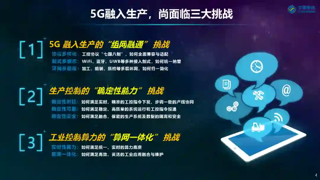 段晓东表示,“5G+工业互联网”正呈现高速发展的态势,5G辅助生产已取得斐然成效。但在5G深入工业设备层、向融入生产迈进的过程中,仍面临组网融通、确定性能力及算网一体化三大挑战。