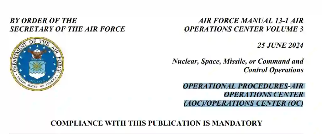 本空军手册(AFMAN)执行空军部政策指令(DAFPD)13-1 “指挥与控制(C2)事业 ”中的指南。它为空中作战中心(AOC)武器系统(WS)或作战中心(OC)提供指导,空军部队司令官(COMAFFOR)在支持作战指挥官(CCDR)或执行空中、太空、网络空间(空军部(DAF)计算机和网络)作战和信息战(IW)时,将为空中作战中心提供指导。