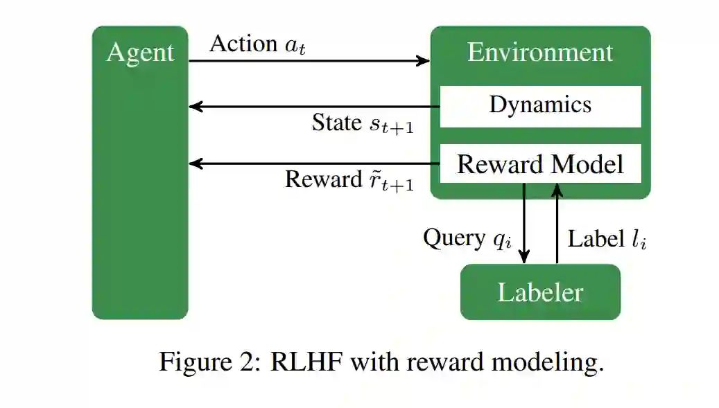 互动和在线 我们还强调以互动、在线方式提供反馈。这排除了模仿学习、从示范学习和纯逆向RL。 可扩展和异步 我们关注的是将人类包括在循环中,但代理不被人类反馈阻塞,人类也不需要持续存在的工作。 此外,我们主要关注2017年后发表的作品,因为更早的作品已由Wirth等人(2017)综述。然而,为了阐述仍然是最新技术或已经显著塑造了最新技术的某些概念,我们不时回顾这一时期的一些作品。如果使用的方法对RLHF方法有兴趣,将会作出例外。
