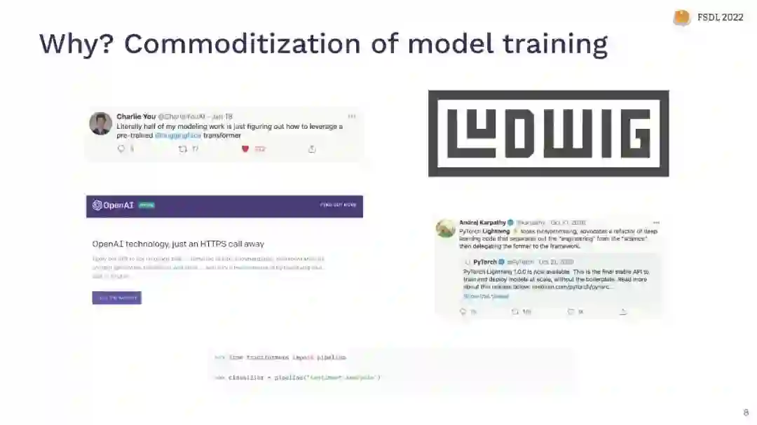 制定问题并估算项目成本 收集、清理、处理、标记、合成和增强数据 选择正确的框架和计算基础设施 故障排除培训和确保重现性 大规模部署模型 ✨监控并持续改进部署的模型✨ ✨ML团队如何工作以及如何管理ML项目✨ ✨建立在大型语言模型和其他基础模型✨